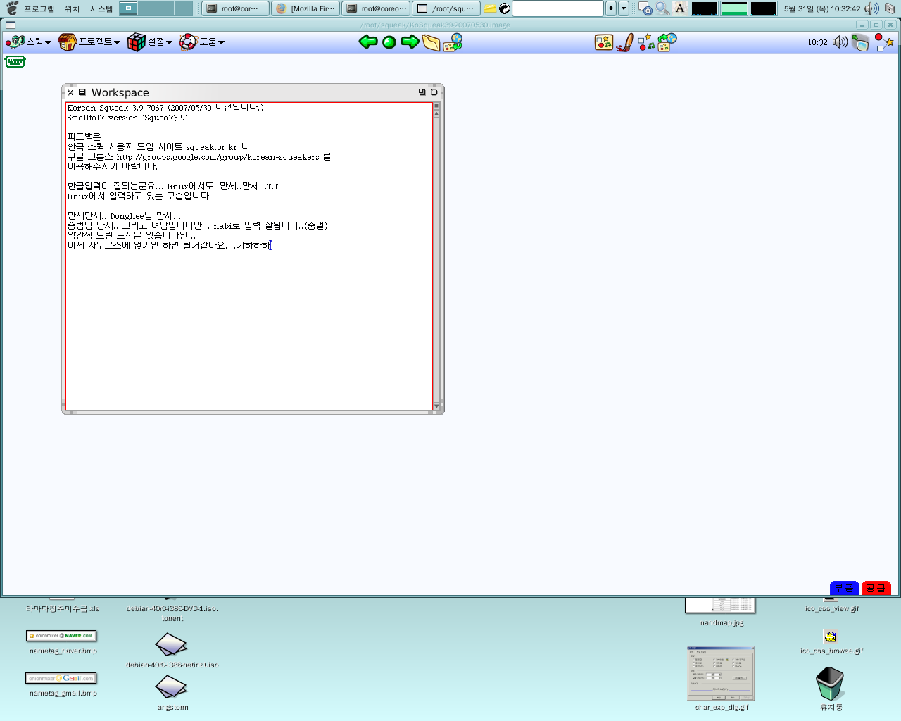 squeak XIM patch와 최신버전의 KoreanSqueak image를 사용하였습니다..